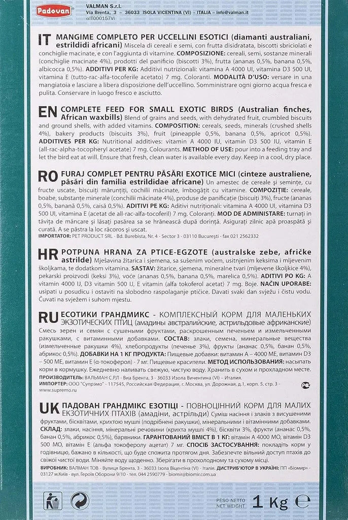 Choose Padovan GrandMix Esotici for a complete and nourishing diet that will keep your exotic birds lively and thriving. Perfect for enhancing their diet with quality ingredients and balanced nutrition